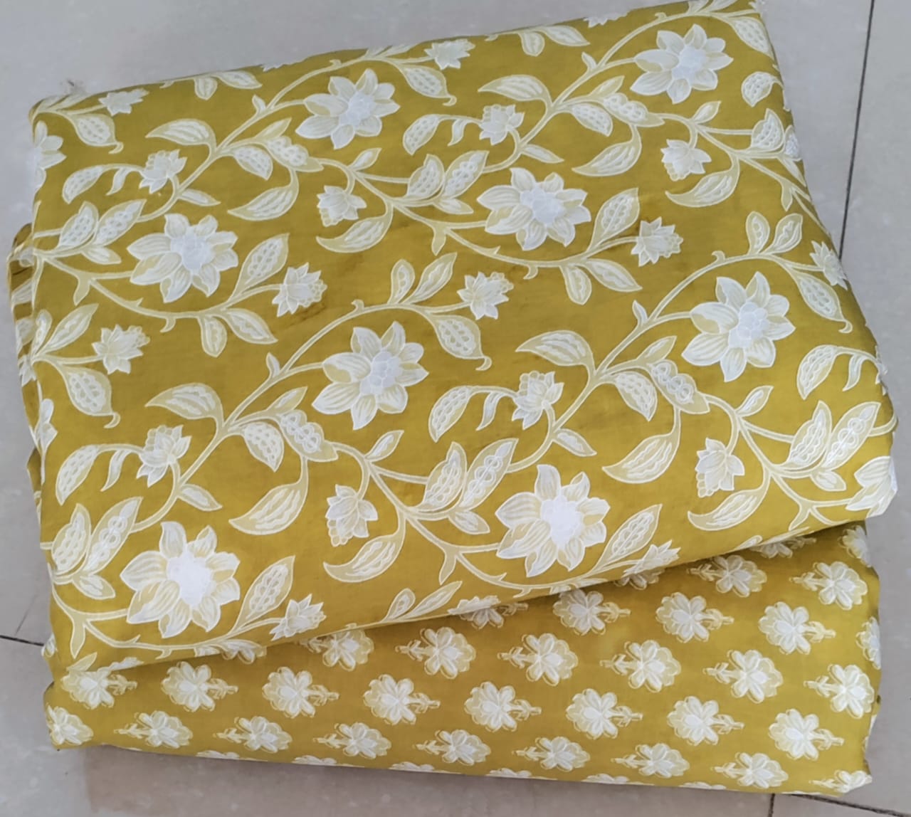 My RaikaHand block-printed cotton suit with cotton dupatta printing is one of the most traditional and unique methods of fabric printing using block prints by hand, where artisans impress hand-carved wooden stamps printed with dyes onto the cloth to reveal intricate Boota, floral, booty, and geometric designs.